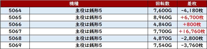 ・集計機種計42台総差枚数:+164,500枚
