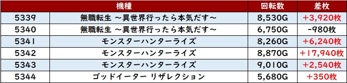 更に「無職転生~スマスロゴッドイーター 5339~5344」が3機種にわたって好調さをアピール!