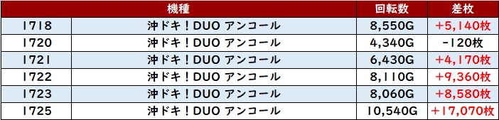 まずは「沖ドキDUO2 1718~1725」がポテンシャルの高さを遺憾なく発揮!