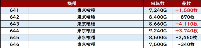 朝イチは「スマスロ北斗」「モンキー5」「東京喰種」「鉄拳6」から埋まった。