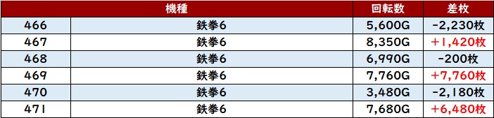 その稼働も相まって6台中5台が大幅プラス差枚と有意義な結果を残し、好調さを周囲に披露していた!