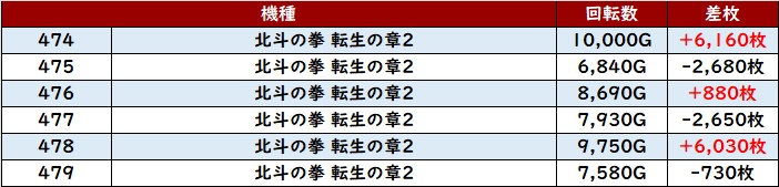 ・1台あたりの平均差玉数:+2,050玉