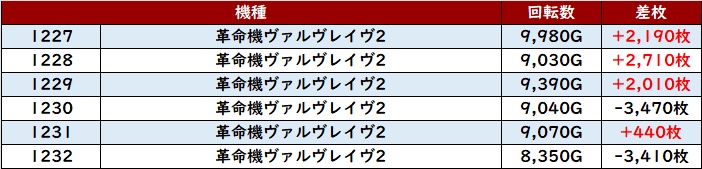 ・1台あたりの平均差枚数:+2,550枚