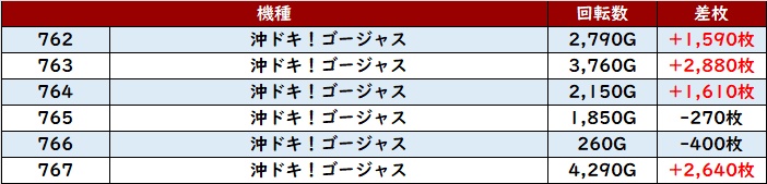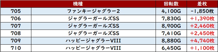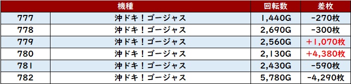 こちらも6台中5台が大幅プラス差枚と非常に優秀な結果で、ユーザー達の期待感にしっかり応えていた。