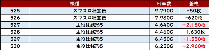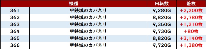 全台回転数8,800G超えに加えプラス差枚と絶好調となり、朝から夜まで熱気が冷めることはなかった!