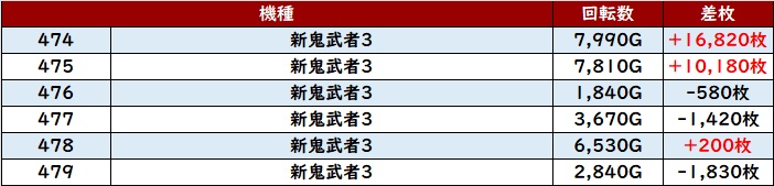続いて「新鬼武者3 474~479」から驚愕の出玉感を目撃!