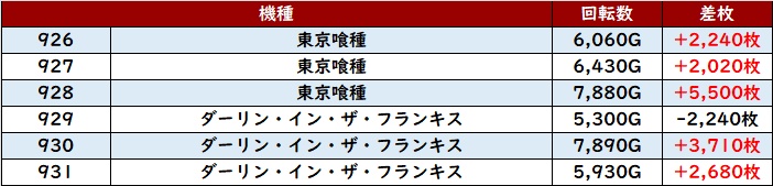 差枚数+1万枚OVERが2台見受けられ、主役と呼ぶに相応しい活躍ぶりであった!