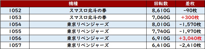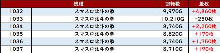 続いて「スマスロ北斗 1032~1037」は素晴らしい稼働状況に!