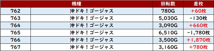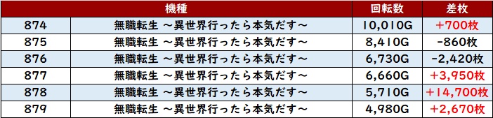 まずは「スマスロ北斗 814~819」が差枚数+9,370枚を中心に、全台差枚数+3,600枚超えと圧巻の光景に!