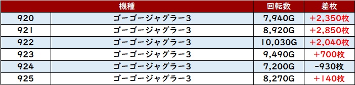 全台大幅プラス差枚となっており、非の打ち所がない結果を叩き出していた。