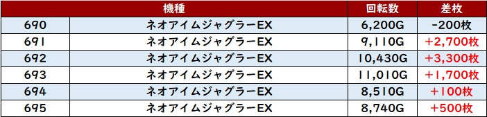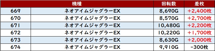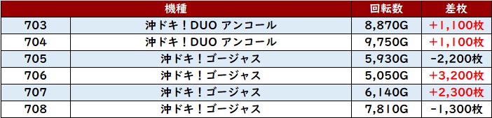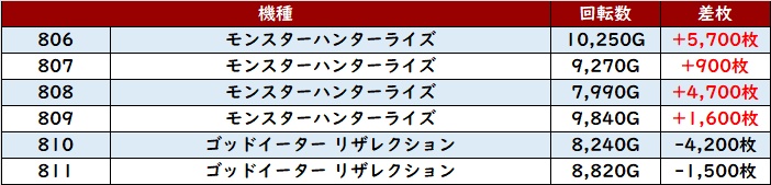 ・スロット集計機種計42台総差枚数:+94,000枚
