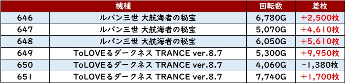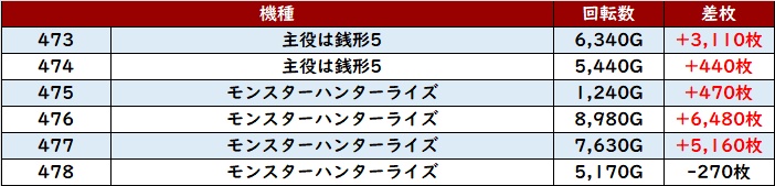 更に「スマスロ北斗 445~450」から差枚数+8,240枚と凄まじい数値が見られ、ユーザーを視線を釘付けに!