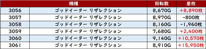 優秀な稼働に伴って大幅プラス差枚を記録する台が多数見られ、ユーザー達の満足度に繋げていた。