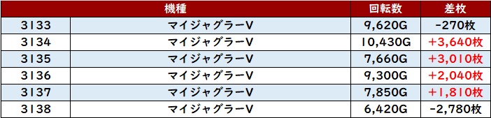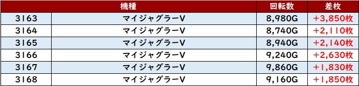 更に「マイジャグ5 3133~3138、3163~3168」が絶好調!