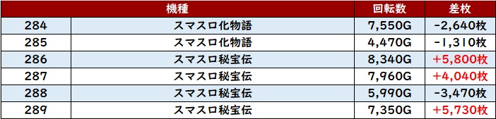 続いて「スマスロ化物語~スマスロ秘宝伝 284~289」が機種を跨いで圧巻の活躍!