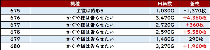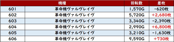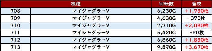 苦しい展開となる台が多く見られたが、中には差枚数+1万枚超えと圧倒的な出玉感も複数確認できた。
