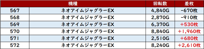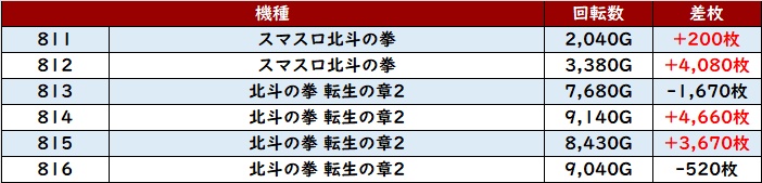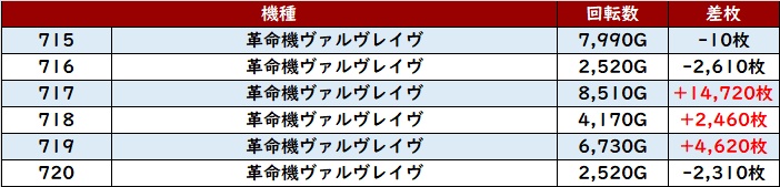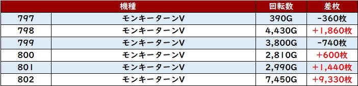 大半が回転数8,000G超えに加え、半数が差枚数+3,400枚超えと活躍を見せていた。