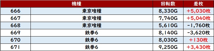 続いて「東京喰種~鉄拳6 666~671」が機種を跨いで絶好調!