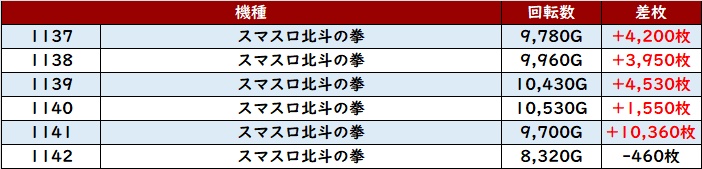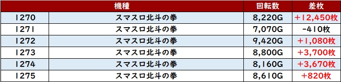 続いて「スマスロ北斗 1137~1142、1270~1275」が2箇所で好調さをアピール!