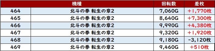 まずは「北斗転生2 464~469」が大盛況!