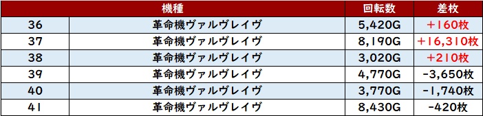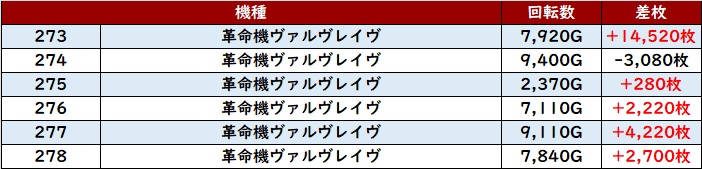 中には回転数10,130G且つ差枚数+11,850枚といった衝撃の数値を叩き出す台も現れ、ユーザー達の注目度も非常に高い箇所となった。