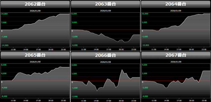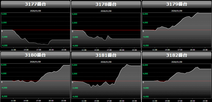 ・集計機種計48台総差枚数:+134,700枚