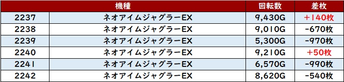 ・20スロ全460台総差枚数:+240,130枚
