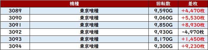 まずは「東京喰種 3089~3094」が人気機種さながらの盛り上がりに!