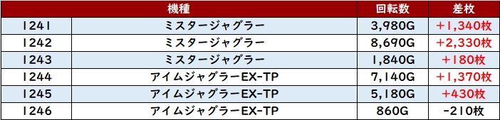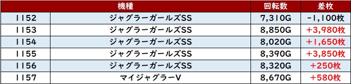まずは「ガールズSS~マイジャグ5 1152~1157」が6台中5台がプラス差枚と高い勝率に!