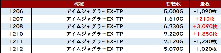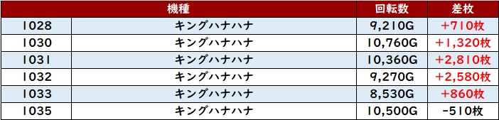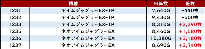差枚数+8,300枚超えが2台も含んでおり、半数が回転数9,100G超えなど素晴らしい活躍を見せた!