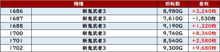 まずは「新鬼武者3 1686~1702」が素晴らしい出玉感に!