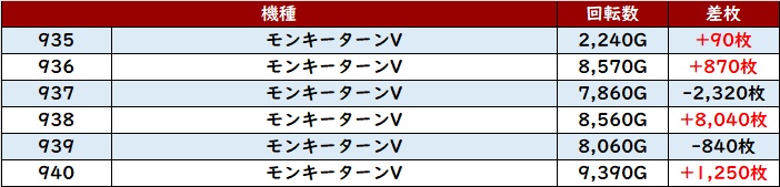 また「モンキー5 935~940」が健闘を見せるも、控えめな稼働となる箇所が目立ってしまうかたちに。