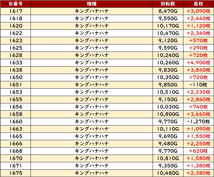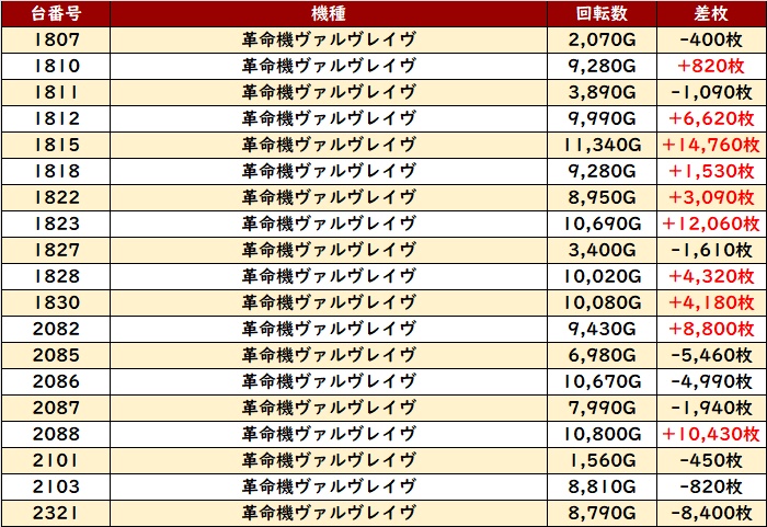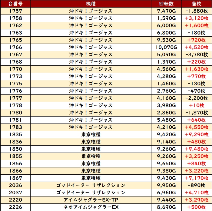 中には差枚数+1万枚超えが多数見られ、荒い機種ながらも素晴らしい功績を残していた!