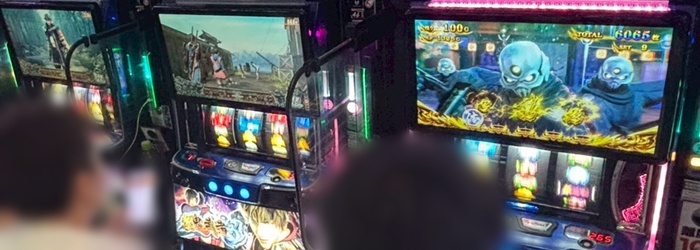 今回は朝から人気を博した【新鬼武者3 2266〜2268】が新台らしい活気ある一角に!