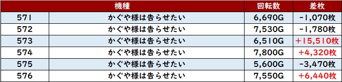 また「かぐや様 571~576」から驚愕の出玉感を記録する台を目撃!