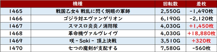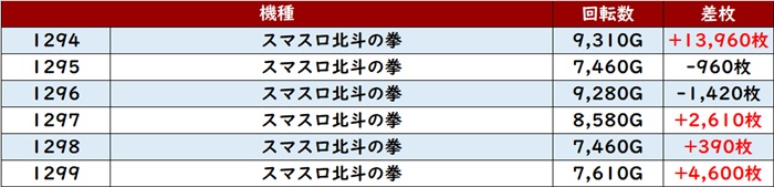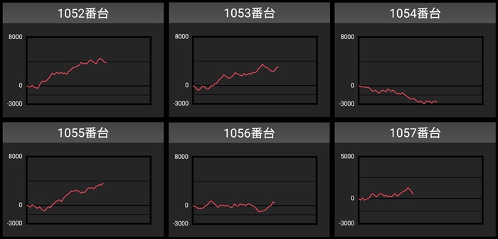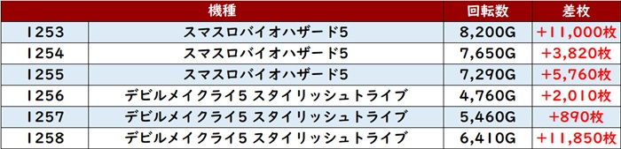 まずは「スマスロバイオ5~DMC5ST 1253~1258」が全台プラス差枚を記録し、一際注目を集める一角に!