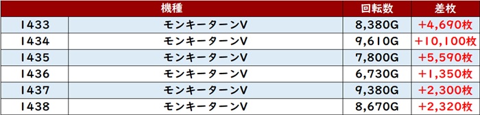 続いて「モンキー5 1433~1438」が安定感ある結果に!