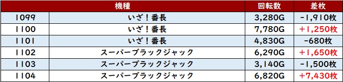 6台中5台が差枚数+3,300枚超えの大幅プラス差枚を獲得し、ユーザーの満足度もさぞかし高かったことだろう!