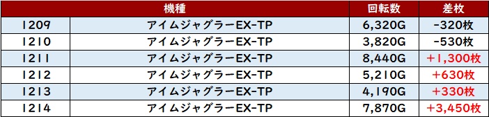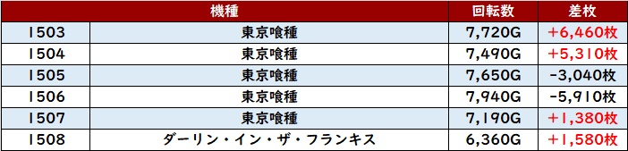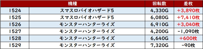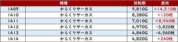 差枚数+14,510枚を筆頭に大きな出玉感を伴う台が多く、稼働状況も良好だった!
