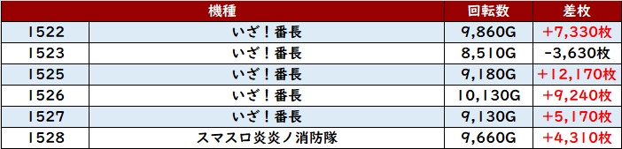 まずは「いざ番~スマスロ炎炎 1522~1528」が驚愕の出玉感を叩き出し、ユーザーを魅了!