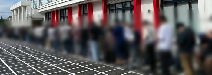 朝イチは「モンキー5」「東京喰種」「新鬼武者3」「マギレコ」「ハナハナシリーズ」「ゴージャグ3」が満席となるスタートとなった。