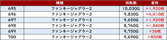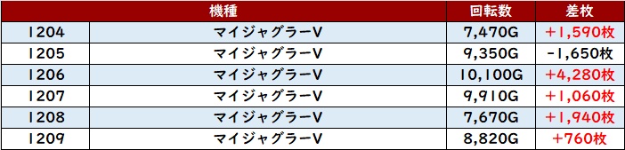 どちらの箇所も凄まじい稼働状況となっており、その稼働の高さも相まって合計12台中11台がプラス差枚と優秀な結果へ繋げていた!