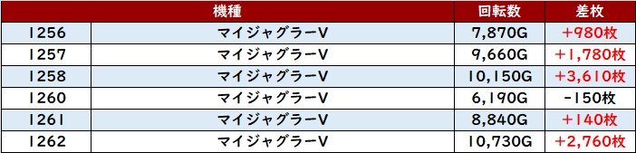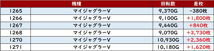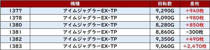 半数が差枚数+5,300枚超えの大幅プラス差枚を記録し、店内の出玉感を大きく向上させた。