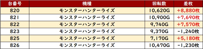 初開催となる今回は「モンハンライズ」が殆どが回転数9,300G超えと凄まじい稼働状況に!
