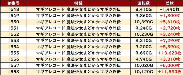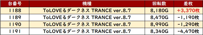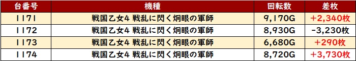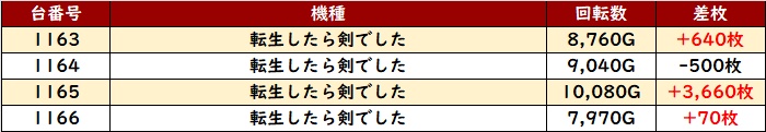 回転数1万G超え差枚数+1.1万枚超えの台を多数見られ、他の機種をも凌駕するような圧倒的な数値を見せつけていた!