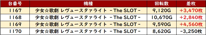 続いて「転剣」「スタァライト」など全台系と思しき数値を記録!