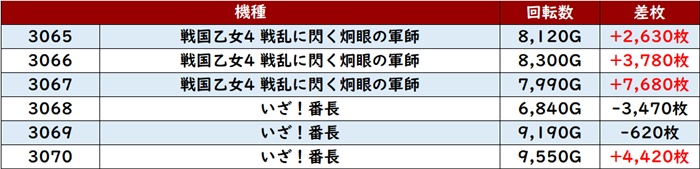 続いて「乙女4~いざ番 3065~3070」も機種を跨いで大盛況に!