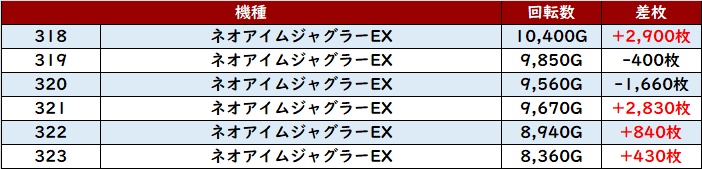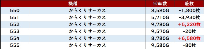 出玉感でも半数が差枚数+5,500枚以上を叩き出しており、持ち前のポテンシャルを発揮させたような出玉感となった。