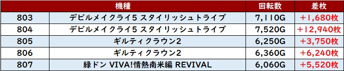全台大幅プラス差枚に加えて、中には差枚数+約1.2万枚の台も確認でき、一際目を引く大活躍であった!