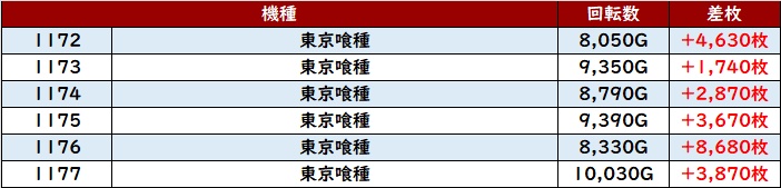 更に「東京喰種 1172~1177」も回転数8,000G超えと凄まじい勢いに!